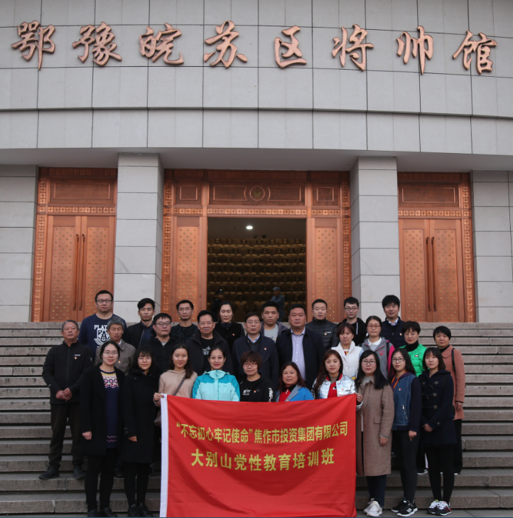 2018年11月8日至10日,集團黨委組織下屬各黨支部委員會成員、機關黨支部全體黨員及通良公司黨支部黨員到信陽市新縣大別山紅色黨性教育培訓基地,接受為期3天的“弘揚大別山精神、傳承紅色基因、做合格共產黨員”紅色集中教育活動。