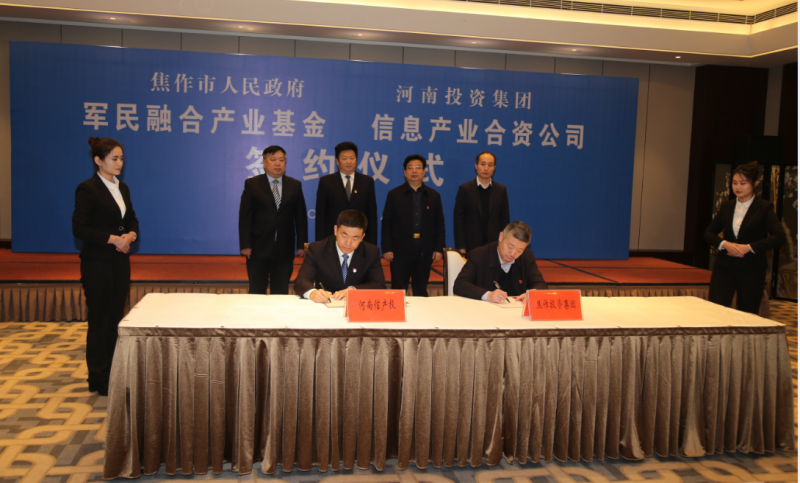 1月9日上午,集團(tuán)公司代表市人民政府與河南投資集團(tuán)合作設(shè)立軍民融合產(chǎn)業(yè)基金、成立信息產(chǎn)業(yè)合資公司的簽約儀式在焦作迎賓館舉行。市委副書(shū)記、市長(zhǎng)徐衣顯,河南投資集團(tuán)黨委書(shū)記、董事長(zhǎng)劉新勇出席并致辭。市委常委、常務(wù)副市長(zhǎng)李民生,副市長(zhǎng)孫起鵬,河南投資集團(tuán)副總經(jīng)理李興佳一同出席。集團(tuán)公司董事長(zhǎng)鄒仲春、總經(jīng)理王敏分別代表市政府與省投資集團(tuán)相關(guān)下屬公司進(jìn)行簽約。